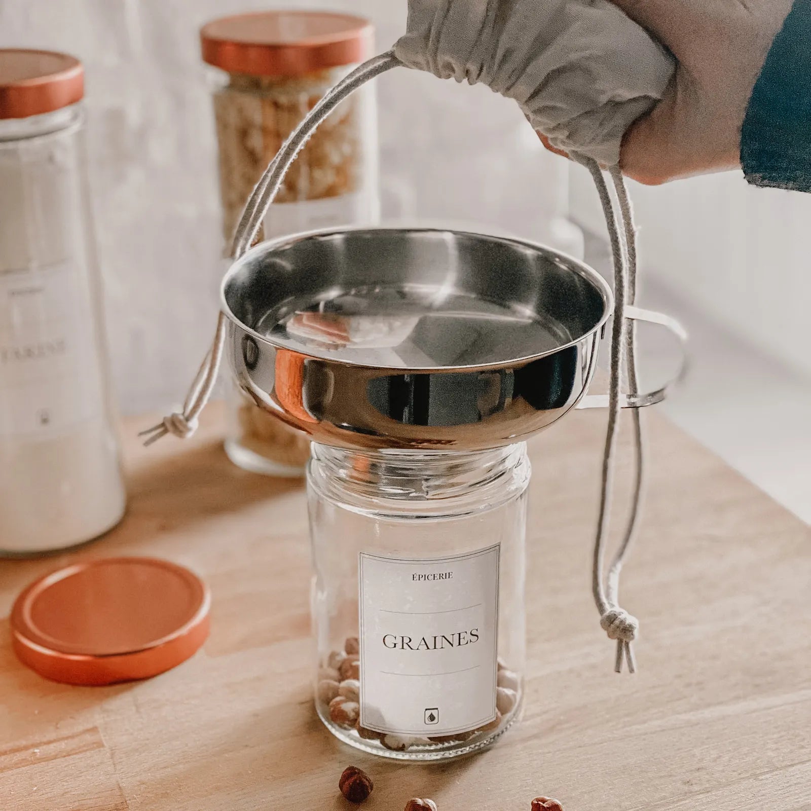 Notre collection d'accessoires de cuisine est conçue pour simplifier votre quotidien en cuisine. Des entonnoirs à confiture pour un remplissage facile et sans dégâts, aux pinces à bocal pour une prise en main sûre et facile, notre sélection d'accessoires est faite pour vous faciliter la vie en cuisine.