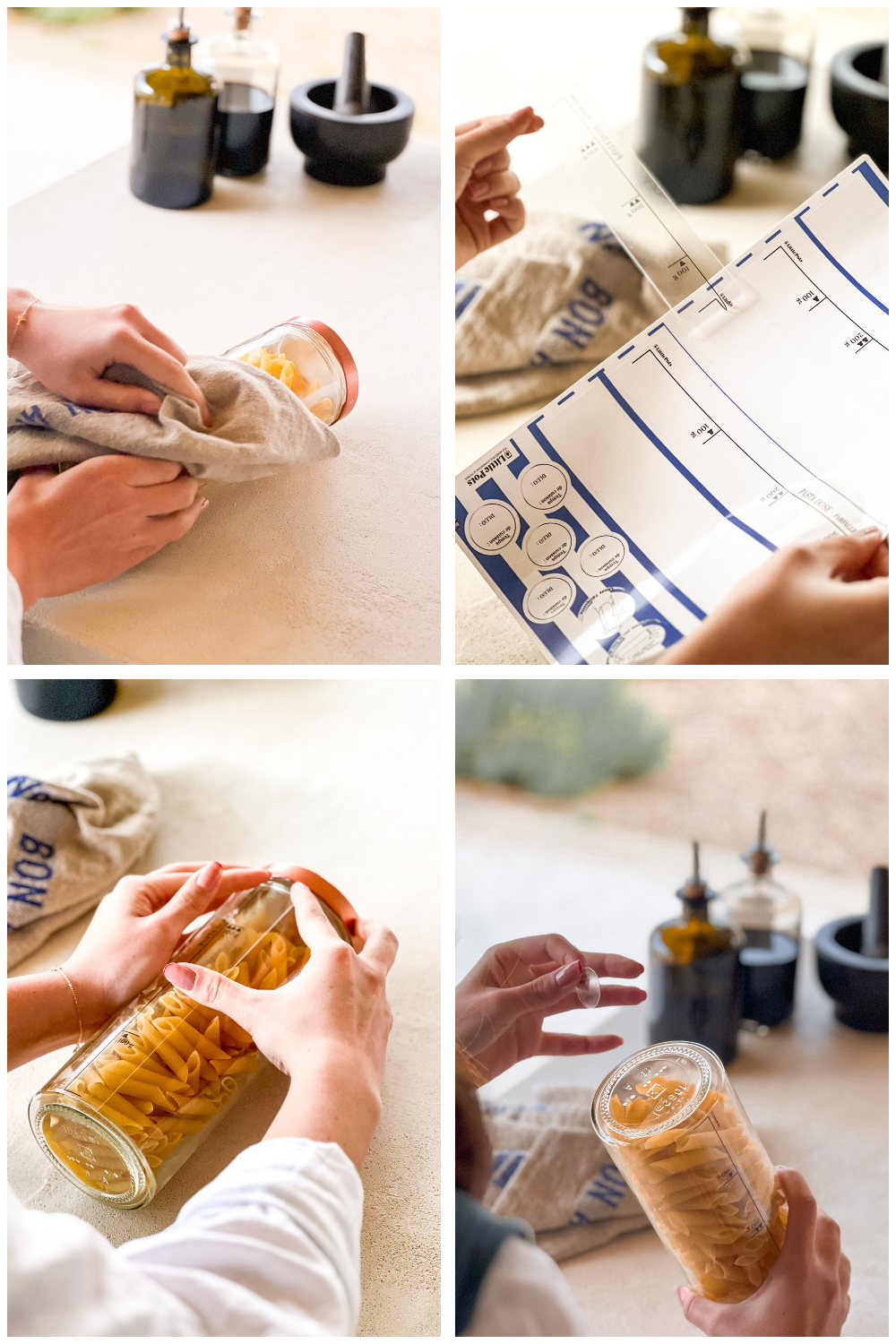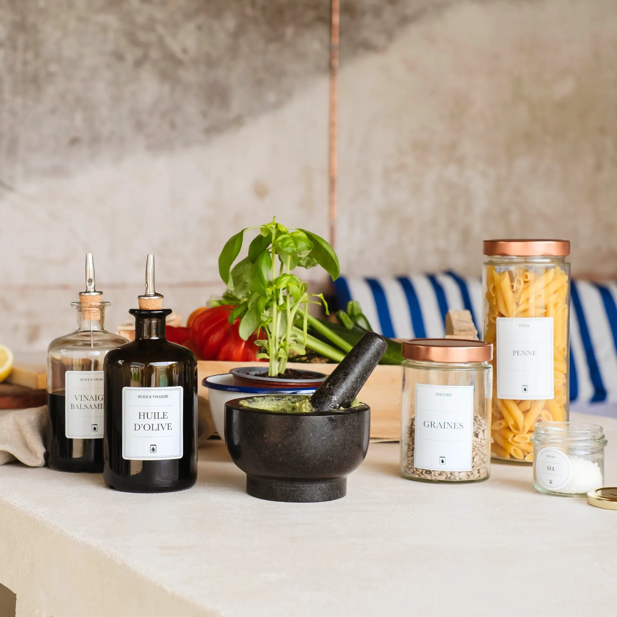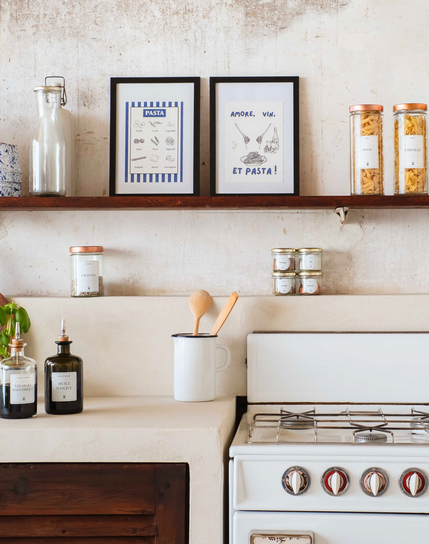 La collection Amour Pasta Vin allie élégance et durabilité pour sublimer votre cuisine. Au cœur de cette gamme, la Pasta Box comprend d'élégants bocaux de conservation en verre recyclé, accompagnés d'étiquettes waterproof permettant d'identifier chaque variété de pâtes et des étiquettes pour vous faciliter de le dosage de vos pâtes. Des affiches illustrant cette collection avec une affiche guide détaillée des variétés ajoutent une touche décorative et informative à votre cuisine. Nos torchons en lin naturel fabriqués en France se distinguent par leur qualité exceptionnelle et leur look élégant. Les verres upcyclés, créés à partir d'anciennes bouteilles de vin, apportent authenticité et charme à vos dégustations. Chaque pièce de cette collection est conçue pour offrir beauté, fonctionnalité et respect de l'environnement. Adoptez le mode de vie durable et raffiné d'Amour Pasta Vin. Découvrez dès maintenant cette collection gourmande et chaleureuse et transformez votre cuisine avec style et durabilité.