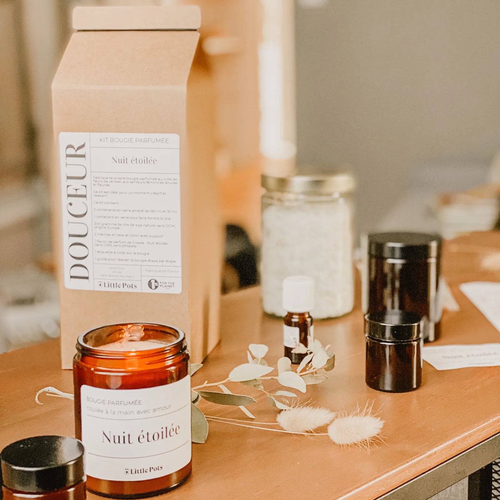 Vous y trouverez une sélection de kits pratiques pour réaliser facilement vos propres cosmétiques, produits ménagers, bougies et même pour faire vos courses en vrac.