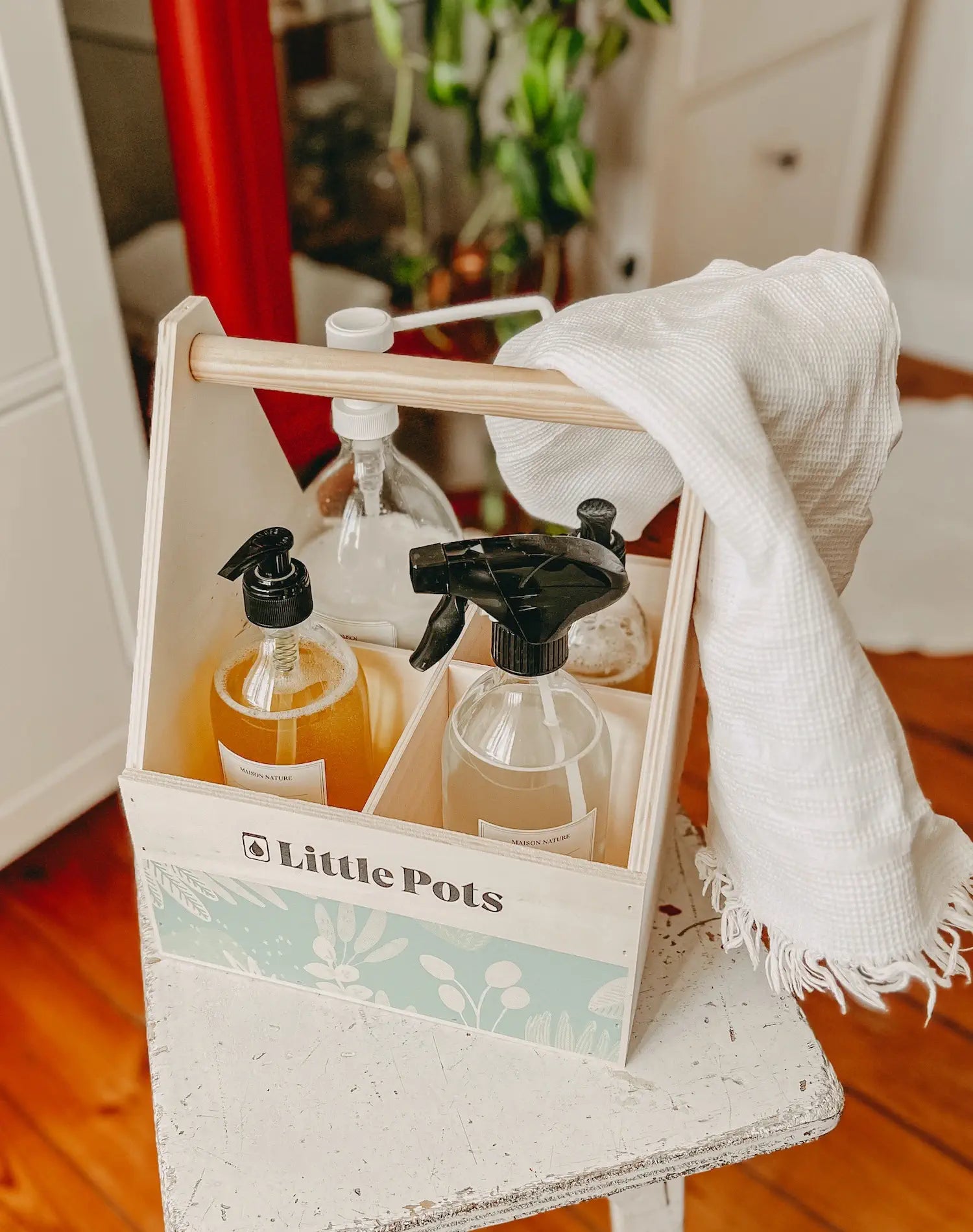 Organisez de manière optimale vos flacons avec votre casier en bois naturel de notre Pack Le Tout Propre. Économisez de l'argent et réduisez votre impact environnemental grâce à nos flacons en verre recyclé réutilisables et rechargeables !