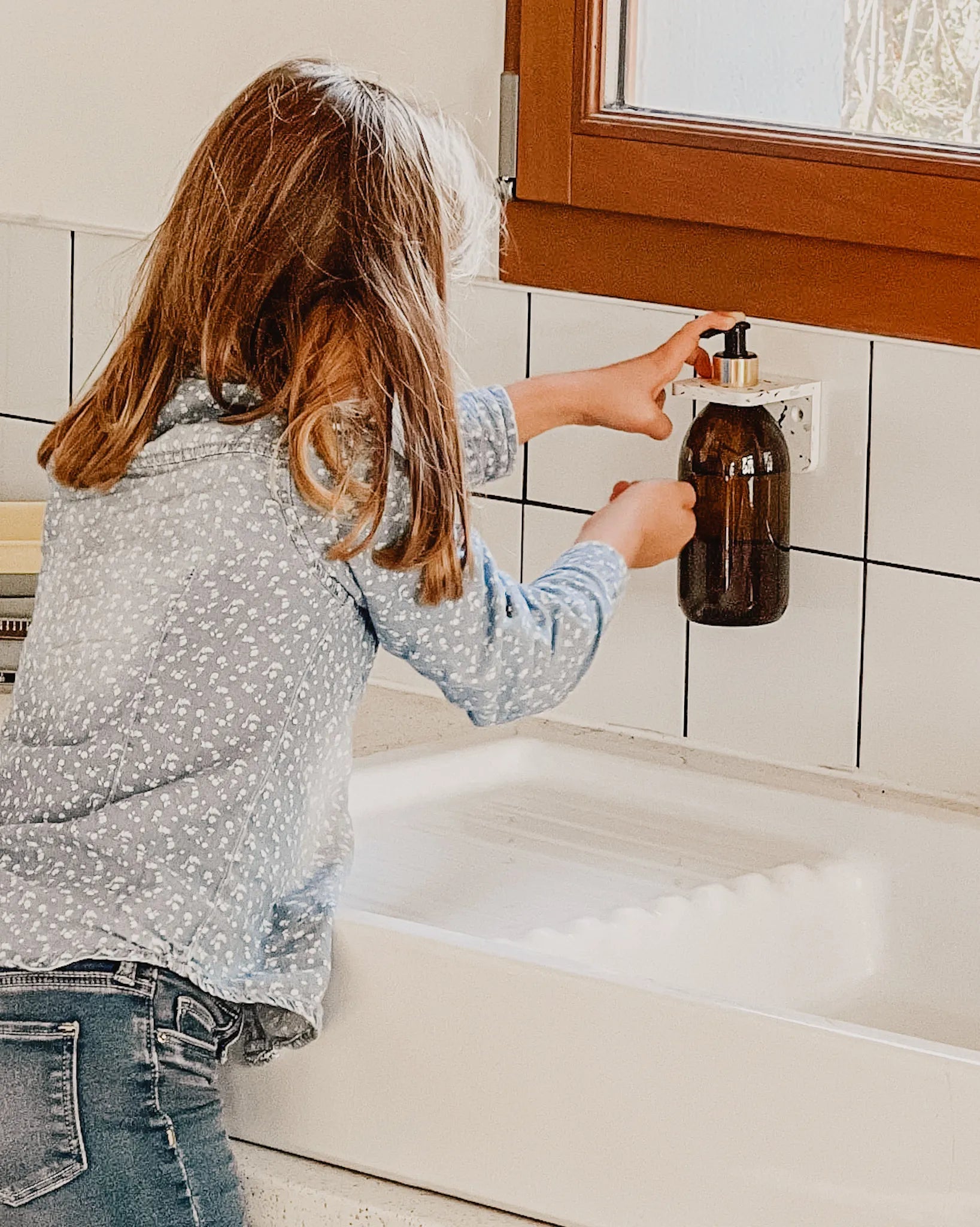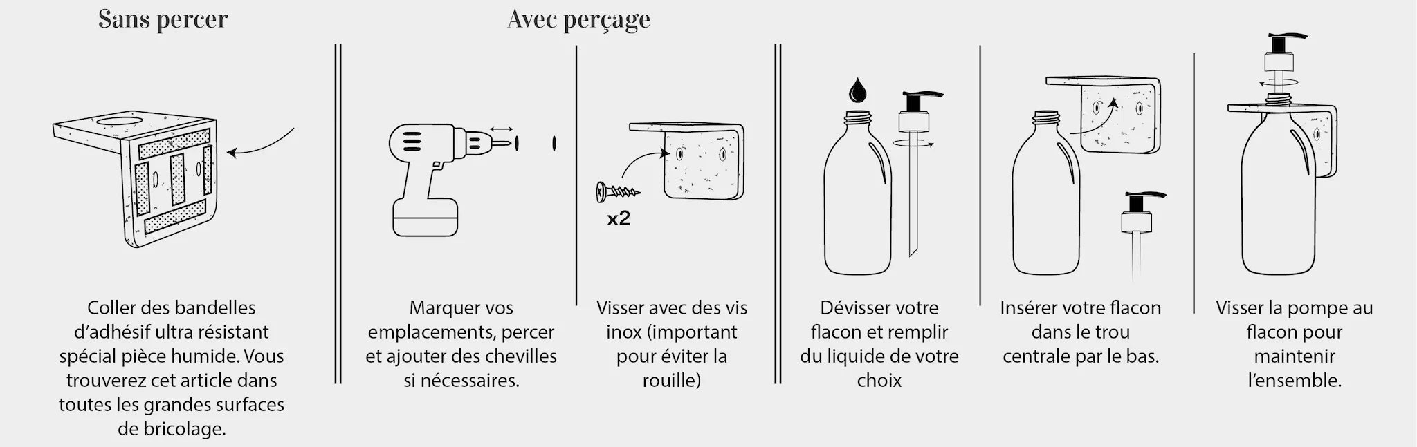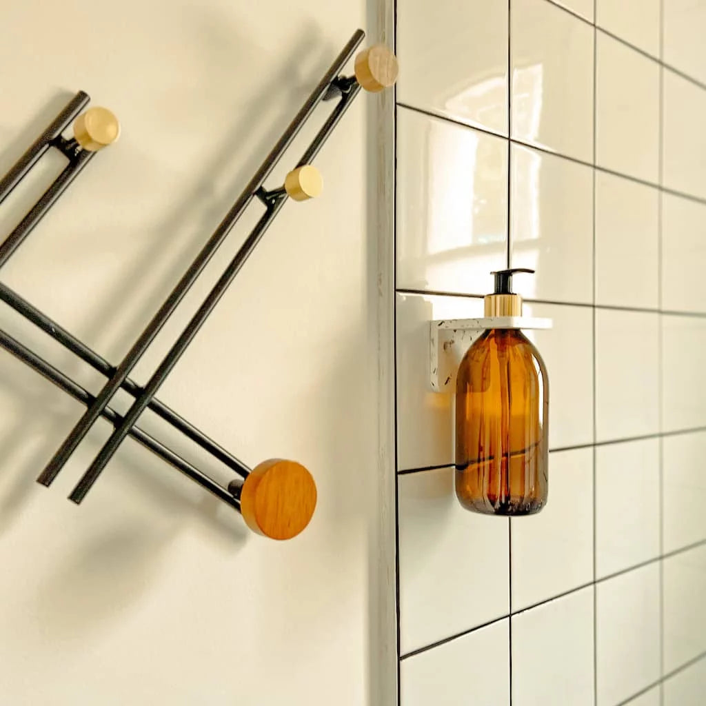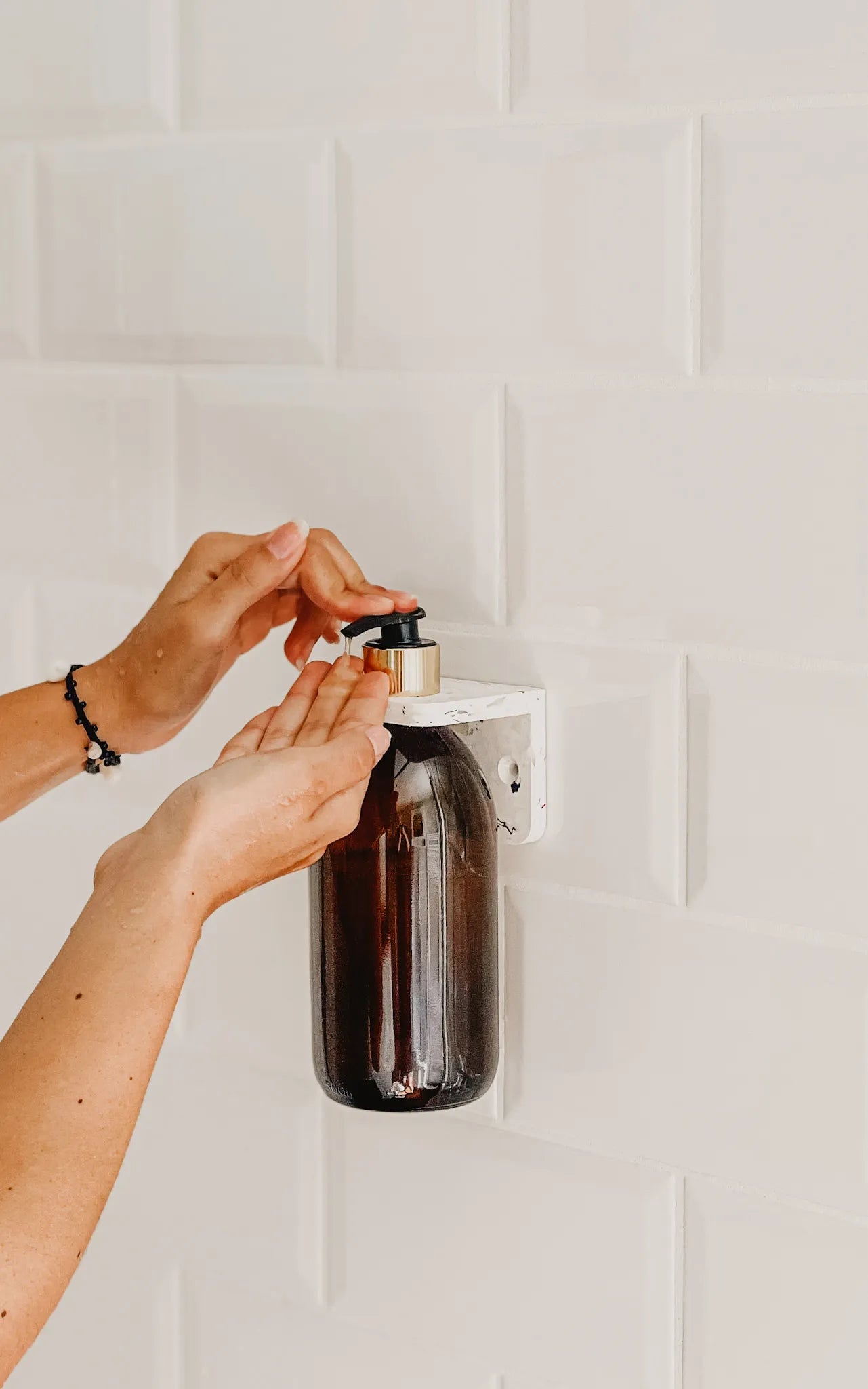 Transformez votre salle de bain en un espace harmonieux et design avec Stylic, le support mural pour distributeur de savon liquide en plastique upcyclé !