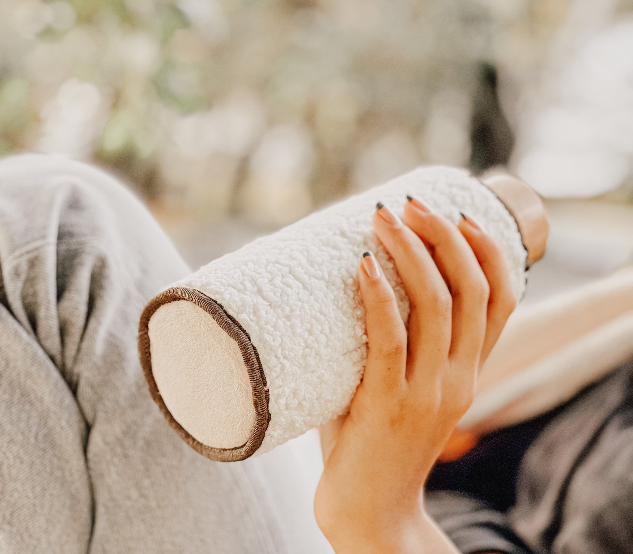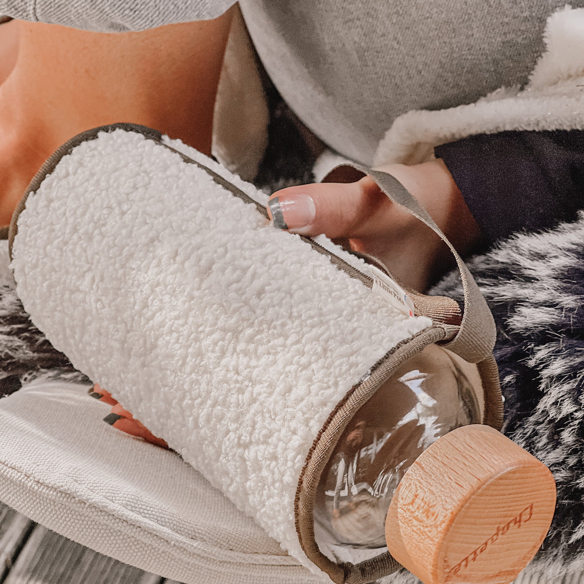 Une matière douce et réconfortante pour vous donner l'envie de vous hydrater même en période hivernale ! C'est le point de départ de cette collection Bouclettes 100% végan. Thé chaud, infusion, café, votre gourde Chopette Bouclettes vous permettra de profiter de toutes vos boissons sans transfert de goût et en les gardant au chaud grâce à cette housse cosy isotherme. Nos housses Bouclettes sont confectionnées avec beaucoup d'attention dans notre atelier partenaire à quelques kilomètres de Cognac.