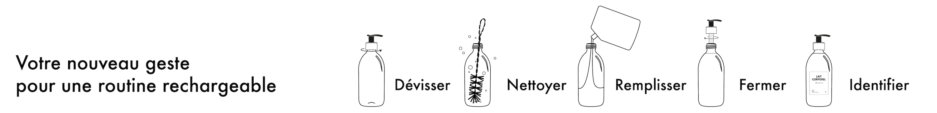 - Harmonie : Transformez votre routine quotidienne en un rituel harmonieux, grâce à des flacons réutilisables qui allient esthétisme et durabilité.