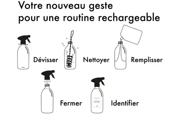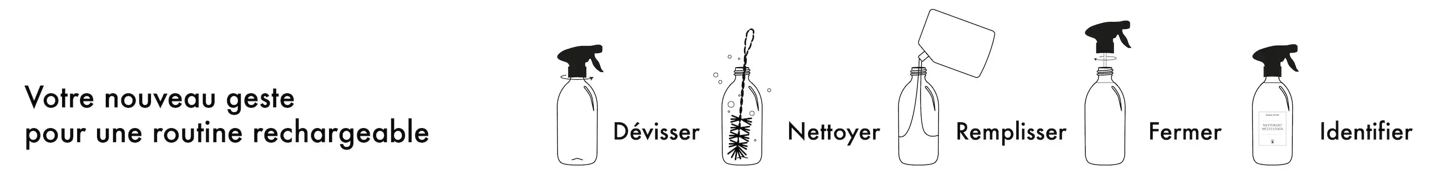 Outre la diminution de plastique à usage unique, en faisant le choix d'investir dans des flacons en verre réutilisables, vous réalisez des économies à long terme sur votre entretien ménager efficace et sain.